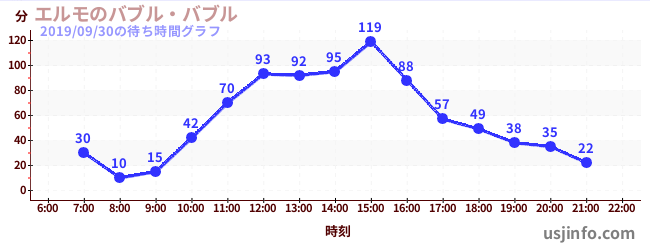 • エルモのバブル・バブル$B$N(B2019年09月30日の待ち時間