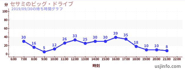 • セサミのビッグ・ドライブ$B$N(B2019年09月30日の待ち時間