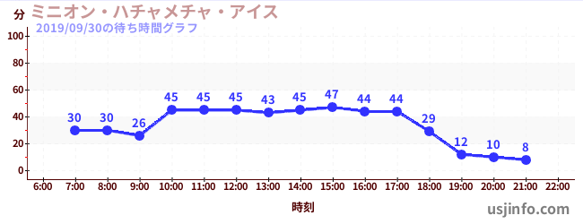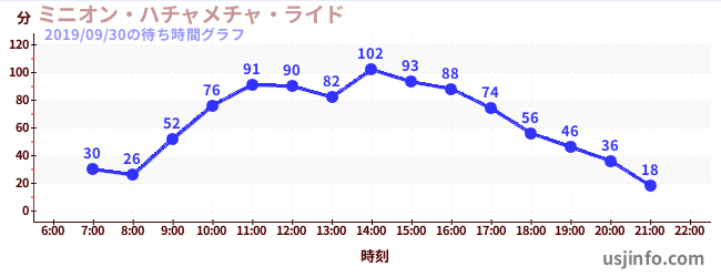 • ミニオン・ハチャメチャ・ライド$B$N(B2019年09月30日の待ち時間