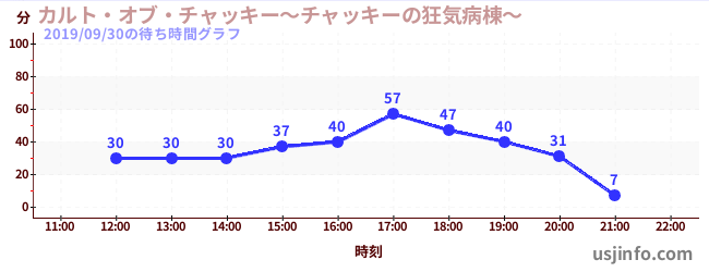 • カルト・オブ・チャッキー~チャッキーの狂気病棟~$B$N(B2019年09月30日の待ち時間