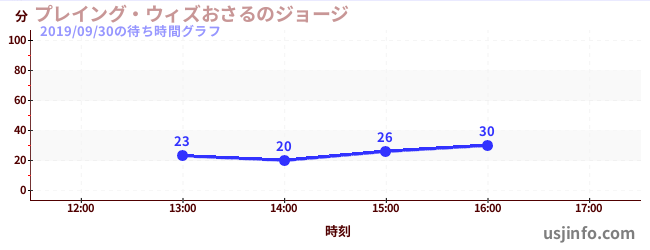 • プレイング・ウィズおさるのジョージ$B$N(B2019年09月30日の待ち時間
