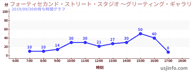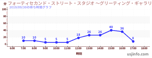 • フォーティセカンド・ストリート・スタジオ ~グリーティング・ギャラリー~ ミニオン$B$N(B2019年09月30日の待ち時間