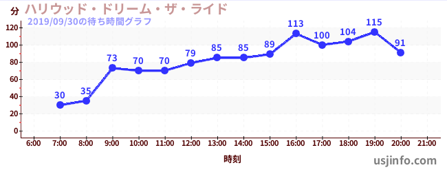 • ハリウッド・ドリーム・ザ・ライド$B$N(B2019年09月30日の待ち時間