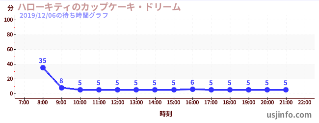 • ハローキティのカップケーキ・ドリーム$B$N(B2019年12月06日の待ち時間