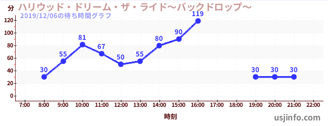 • ハリウッド・ドリーム・ザ・ライド〜バックドロップ〜$B$N(B2019年12月06日の待ち時間