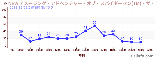 • NEW アメージング・アドベンチャー・オブ・スパイダーマン(TM)・ザ・ライド 4K3D$B$N(B2019年12月06日の待ち時間