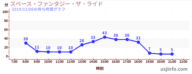 • スペース・ファンタジー・ザ・ライド$B$N(B2019年12月06日の待ち時間