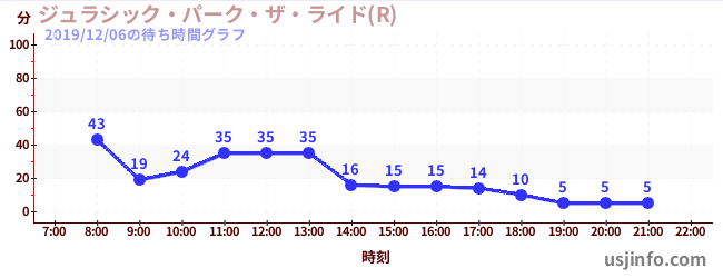 • ジュラシック・パーク・ザ・ライド(R)$B$N(B2019年12月06日の待ち時間