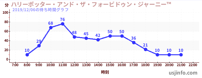 • ハリーポッター・アンド・ザ・フォービドゥン・ジャーニー™$B$N(B2019年12月06日の待ち時間