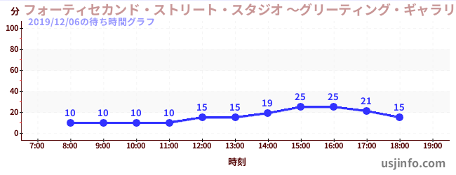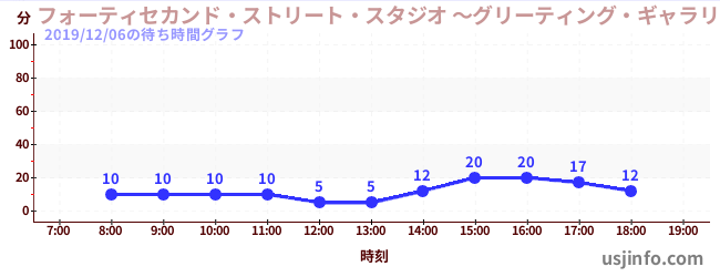 • フォーティセカンド・ストリート・スタジオ ~グリーティング・ギャラリー~ ミニオン$B$N(B2019年12月06日の待ち時間