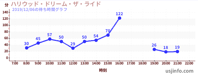 • ハリウッド・ドリーム・ザ・ライド$B$N(B2019年12月06日の待ち時間