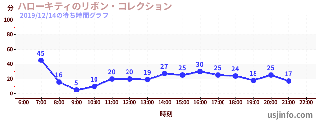 • ハローキティのリボン・コレクション$B$N(B2019年12月14日の待ち時間