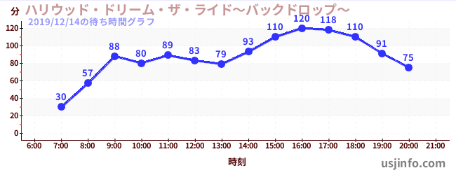 • ハリウッド・ドリーム・ザ・ライド〜バックドロップ〜$B$N(B2019年12月14日の待ち時間