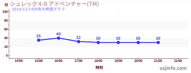• シュレック 4-D アドベンチャー(TM)$B$N(B2019年12月14日の待ち時間