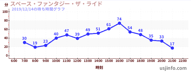 • スペース・ファンタジー・ザ・ライド$B$N(B2019年12月14日の待ち時間