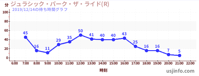 • ジュラシック・パーク・ザ・ライド(R)$B$N(B2019年12月14日の待ち時間