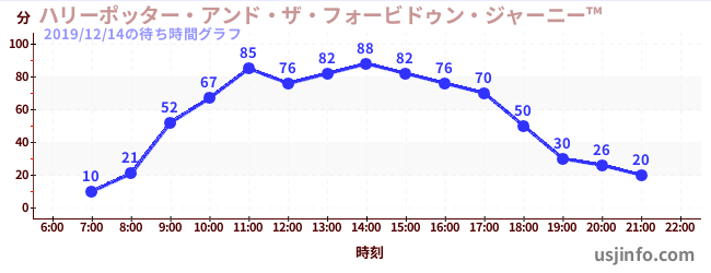 • ハリーポッター・アンド・ザ・フォービドゥン・ジャーニー™$B$N(B2019年12月14日の待ち時間