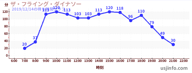 • ザ・フライング・ダイナソー$B$N(B2019年12月14日の待ち時間