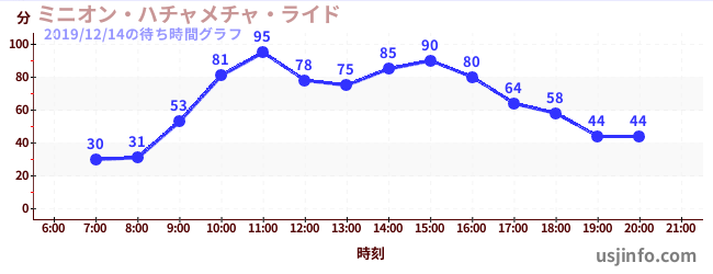 • ミニオン・ハチャメチャ・ライド$B$N(B2019年12月14日の待ち時間