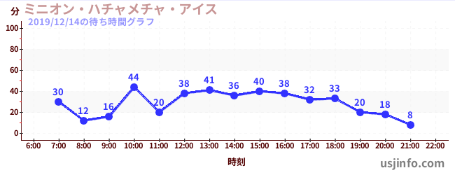• ミニオン・ハチャメチャ・アイス$B$N(B2019年12月14日の待ち時間