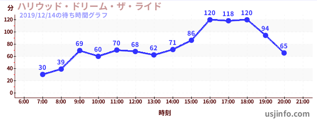 • ハリウッド・ドリーム・ザ・ライド$B$N(B2019年12月14日の待ち時間