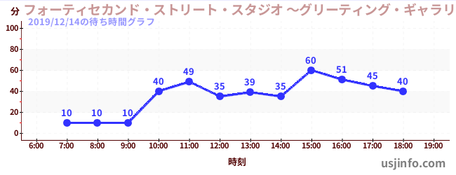 • フォーティセカンド・ストリート・スタジオ ~グリーティング・ギャラリー~ ミニオン$B$N(B2019年12月14日の待ち時間