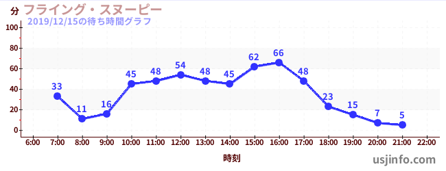 • フライング・スヌーピー$B$N(B2019年12月15日の待ち時間