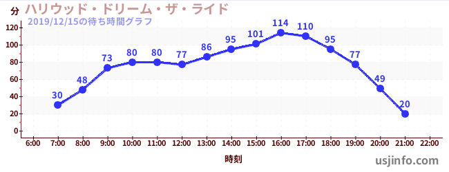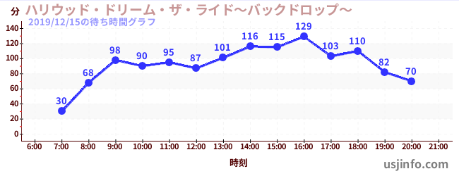 • ハリウッド・ドリーム・ザ・ライド〜バックドロップ〜$B$N(B2019年12月15日の待ち時間