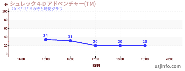 • シュレック 4-D アドベンチャー(TM)$B$N(B2019年12月15日の待ち時間