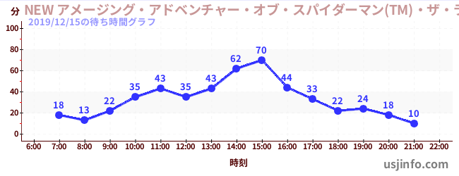 • NEW アメージング・アドベンチャー・オブ・スパイダーマン(TM)・ザ・ライド 4K3D$B$N(B2019年12月15日の待ち時間