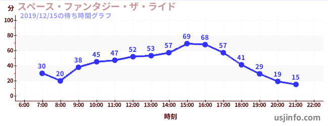 • スペース・ファンタジー・ザ・ライド$B$N(B2019年12月15日の待ち時間