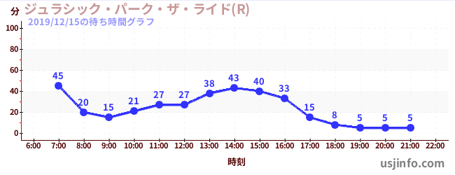 • ジュラシック・パーク・ザ・ライド(R)$B$N(B2019年12月15日の待ち時間