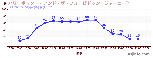 • ハリーポッター・アンド・ザ・フォービドゥン・ジャーニー™$B$N(B2019年12月15日の待ち時間