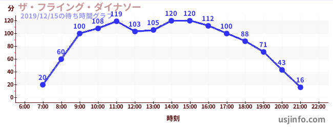 • ザ・フライング・ダイナソー$B$N(B2019年12月15日の待ち時間