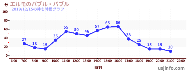 • エルモのバブル・バブル$B$N(B2019年12月15日の待ち時間