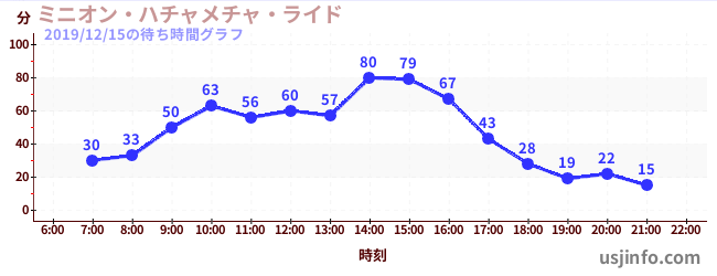• ミニオン・ハチャメチャ・ライド$B$N(B2019年12月15日の待ち時間