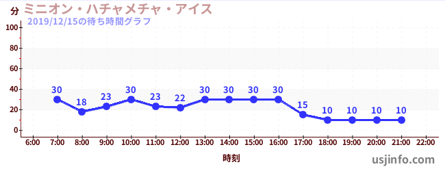 • ミニオン・ハチャメチャ・アイス$B$N(B2019年12月15日の待ち時間