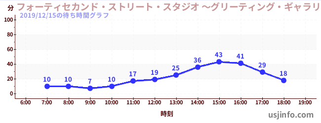 • フォーティセカンド・ストリート・スタジオ ~グリーティング・ギャラリー~ ミニオン$B$N(B2019年12月15日の待ち時間