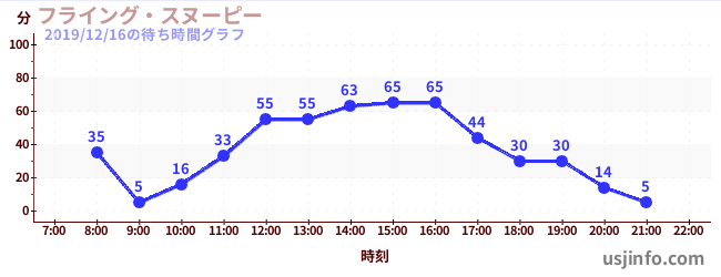 • フライング・スヌーピー$B$N(B2019年12月16日の待ち時間