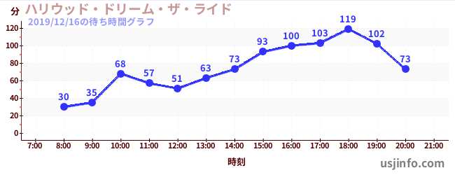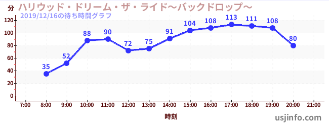 • ハリウッド・ドリーム・ザ・ライド〜バックドロップ〜$B$N(B2019年12月16日の待ち時間