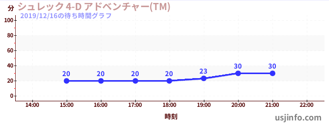• シュレック 4-D アドベンチャー(TM)$B$N(B2019年12月16日の待ち時間