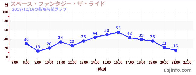 • スペース・ファンタジー・ザ・ライド$B$N(B2019年12月16日の待ち時間