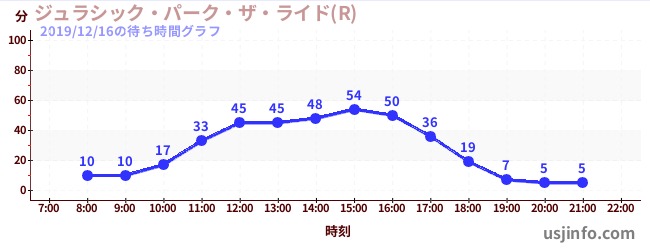 • ジュラシック・パーク・ザ・ライド(R)$B$N(B2019年12月16日の待ち時間
