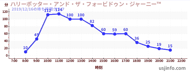 • ハリーポッター・アンド・ザ・フォービドゥン・ジャーニー™$B$N(B2019年12月16日の待ち時間