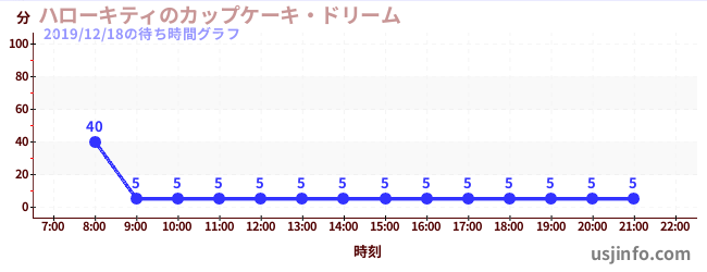 • ハローキティのカップケーキ・ドリーム$B$N(B2019年12月18日の待ち時間