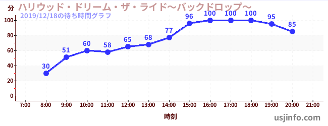 • ハリウッド・ドリーム・ザ・ライド〜バックドロップ〜$B$N(B2019年12月18日の待ち時間