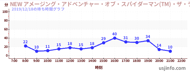 • NEW アメージング・アドベンチャー・オブ・スパイダーマン(TM)・ザ・ライド 4K3D$B$N(B2019年12月18日の待ち時間