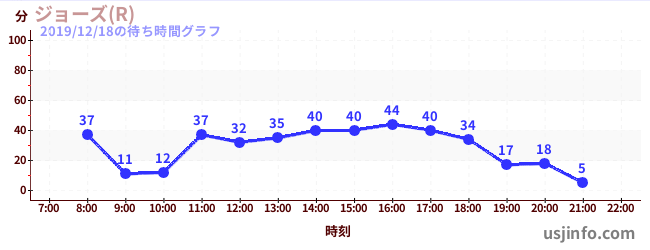 • ジョーズ(R)$B$N(B2019年12月18日の待ち時間