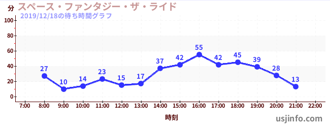• スペース・ファンタジー・ザ・ライド$B$N(B2019年12月18日の待ち時間