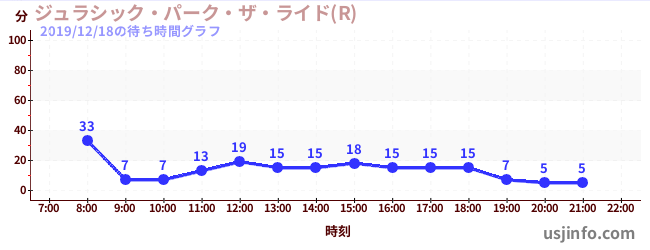 • ジュラシック・パーク・ザ・ライド(R)$B$N(B2019年12月18日の待ち時間